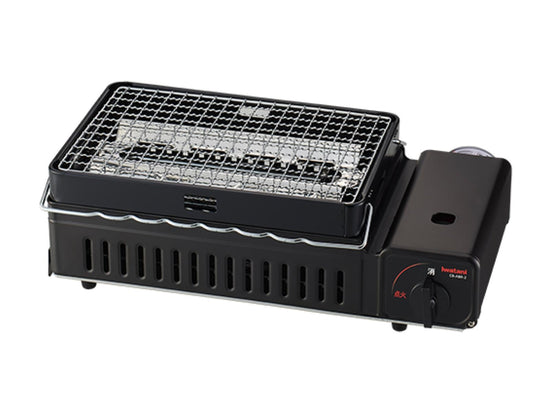 Enjoy authentic robatayaki and yakiniku at home with this full set designed around the Iwatani Aburiya II tabletop gas grill (CB-ABR-2). This bundle provides everything you need for the ultimate Japanese BBQ: the main grill unit, a custom carrying bag, 10 replacement mesh grates, and a professional-grade iron grill plate with tools.