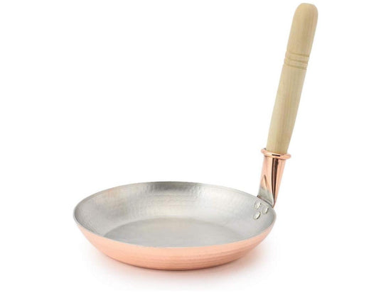 This traditional Japanese copper oyako-nabe pan is handcrafted by Nakamura Copperworks in Tokyo, a workshop known for producing high-quality copper kitchenware. Designed for making oyako-don (chicken and egg rice bowl) and other Japanese simmered dishes, this deep-style pan offers excellent heat conduction and precise cooking control.