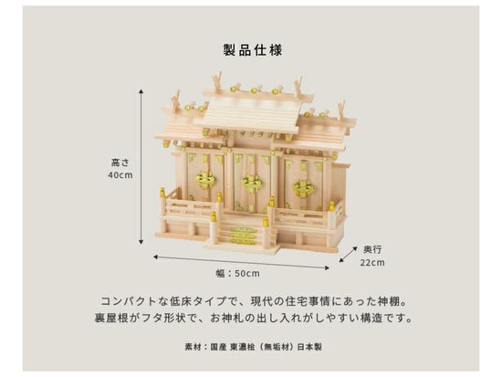 Made in Japan – shrine body crafted from genuine Tōnō hinoki cypress, ensuring quality and tradition.